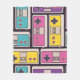 Nahtloses Muster mit Spieljoysticks. Farbige Abbildung Vintag. Dekorative Tapete, gut zum Drucken. Überschneidende Dekoration mit persönlichem Retrogerät für Gaming Erhöhen Sie Ihre Dekoration mit diesem Vintagen Joystick-Muster für verschiedene Anwendungen. Vintage Spieljoysticks in Farbe - eine Spielreise in Pixel. Gamer, Videospiel, Controller, Illustration, 90er, Spaß, Hintergrund, Poster, Computer, Dekor, farbig, abstrakt, Textur, Technik, Vintag, Cartoon, mobil, blau, Stoff, rosa