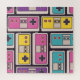 Nahtloses Muster mit Spieljoysticks. Farbige Abbildung Vintag. Dekorative Tapete, gut zum Drucken. Überschneidende Dekoration mit persönlichem Retrogerät für Gaming Erhöhen Sie Ihre Dekoration mit diesem Vintagen Joystick-Muster für verschiedene Anwendungen. Vintage Spieljoysticks in Farbe - eine Spielreise in Pixel. Gamer, Videospiel, Controller, Illustration, 90er, Spaß, Hintergrund, Poster, Computer, Dekor, farbig, abstrakt, Textur, Technik, Vintag, Cartoon, mobil, blau, Stoff, rosa