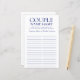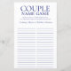 Dieses moderne Marinebild mit dem blauen Couple Name Game Brautparty ist perfekt für jede Dusche. Dieses lustige und leichte Spiel bringt jedem Brautparty viel Lachen. Einfach jedem Gast ein Blatt geben (vergessen Sie nicht die Stifte) und den Spaß gelassen beginnen! Sie werden erstaunt sein, wie viele verschiedene Wörter die Leute sich einfallen lassen, indem sie den vollen Namen der Braut verwenden. Um dieses Spiel zu Ihrem eigenen zu machen, wählen Sie einfach diese Vorlage personalisieren und geben Sie die Namen der Braut und des Bräutigams ein.