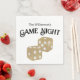 Diese Party-Servietten haben ein eigenes Thema für die Game Night. In der Mitte wird ein Würfel in einem goldenen Glitzer-Design gedruckt. Die Phrase "Game Night" wird über den Würfeln mit einem BeispielFamiliennamen gedruckt. Sie können die Servietten so personalisieren, dass sie Ihren eigenen individuelle Name oder Text enthalten.