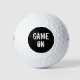 Golfbälle mit Game On Text auf schwarzem Hintergrund angezeigt. Passen Sie dieses Objekt an und ändern Sie die Farben oder kaufen Sie, wie es ist.