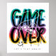 A colorful gaming-inspired typographic design featuring bold gradient lettering that reads “Game Over,” accented with a game controller icon and the phrase “Let’s Play Again!” for a fun, retro-gamer vibe.