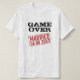 Game Over lustiges T-Shirt mit Briefmarke zum Hochzeitstag. Fun Hochzeitstag Geschenkidee für frisch verheiratete Paare und Flitterwöchler. Personalisieren Sie dieses Geschenk für Braut und Bräutigam. Vintager Stiltee mit rotem Gummi Briefmarke Markierung Datum der Ehe. Cooler Tee für den Junggesellen / Ehemann.