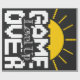 Game Over is depicted in bold, pixelated lettering, with the words “Level Up” creatively superimposed on it in an ornate script at its center and a sun shining behind it at the top. The design combines retro gaming aesthetics with a motivational twist.