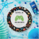 Video Game Party Level Up Kindergeburtstag Gamer Paper Plate. Fügen Sie Namen und Alter hinzu, um diese Gamer-Party-Vorräte zu erweitern. Spaß Muster von Videospielen und Snacks auf schwarzem Hintergrund. Party für Kinder: www.SamAnnDesigns.com