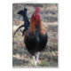Schönes Bild eines perlbeinigen roten Hahns. Er behielt jeden Morgen von meinem Camper zu kommen wollte gefüttert zu werden und auch vor Tageslicht zu krönen.