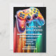 Eine moderne und coole Abbildung eines Bildschirms durch einen orangen, gelben und blauen Plastikvideospielcontroller, der den bzw. die Geburtstagskinder auf der digitalen Leiste hat. Vorlagen in Weiß mit einem schwarzen Schlagschatten erscheinen auf einem neonenförmigen Hintergrund, der für den Anzug des Ereignisses personalisiert sein kann. Diese sind ideal für Party- und Glücksspielfeiern. Ideal für Erwachsene und Kinder.