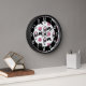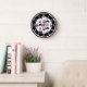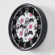Gaming thematische Uhr mit rosa, grau und schwarz Grafiken wie Kopfhörer, Controller und Text-Level hoch.