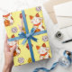 Gamer Maneki Neko Muster mit D20 Dice (gelb) Geschenkpapier
