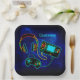 Gamer Retro Neon Blue Pappteller