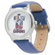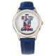 Kinderuhr aus Edelstahl mit blauem Lederarmband