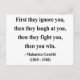 "Erst ignorieren sie dich, dann lachen sie dich aus, dann kämpfen sie dich, dann gewinnst du." - Mahatma Gandhi