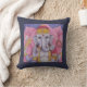 Ein Wurfkissen mit meinem 18" quadratischen Aquarellstift Gemälde von Ganesh. Ganesh ist ein hinduistischer Gott. Er ist der Wegweiser von Hindernissen, Förderer von Kunst und Wissenschaft, der Fürst von Intellekt und Weisheit, der Gott der Anfänge und Förderer von Buchstaben und Lernen. Er hält seinen eigenen gebrochenen Schwanz in seiner rechten unteren Hand und hält eine Delikatesse in seiner links unteren Hand. In einem Oberarm hält er eine Axt und im anderen Oberarm eine Schlinge. Ich habe ihn vor einer rosa Lotus-Blume gesetzt, als Teil eines Sinnes für neue Anfänge, die sich entfalten.