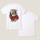 Cartoon Santa mit Pistole, goldener Kette vor Schwarz; edgy Streetwear Stil. Einzigartige Farbakzente, rebellischer Weihnachtslook für Hoodies und T-Shirts.