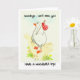 Eine "Abschieds" Karte mit einer Gans, die auf einer Reise mit seinem Eigentum gebunden oben in einem roten und weißen gepunkteten Taschentuch, von der Wasserfarbemalerei von Judy Adamson darlegt. Der Gruß ist '' Auf Wiedersehen - wir verfehlen Sie! Haben Sie eine wunderbare Reise! 'und das Innere wird leer für Ihre eigene Mitteilung verlassen.