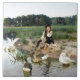 Wunderbare Vintage feine Kunst eines Gansherder-Mädchens und weißen der Gänse mit Gänschen in einem Teich ist auf dieser Fliese. Bild ist das public domain wegen des abgelaufenen Copyright.
