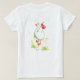 Ein T - Shirt der Damen mit einer Gans, einer Front und einer Rückseite, legend auf einer Reise mit seinem Eigentum gebunden oben in einem roten und weißen gepunkteten Taschentuch, von der Wasserfarbemalerei von Judy Adamson dar. Ideal für jedermann, das ihre Reisen - z.B. ein Abstandsjahr auslöst. Verwenden Sie dieses Bild auf dem T - Shirt Ihrer Wahl für Damen, Männer oder Kinder.