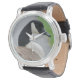 Uhr, Klassische Damenuhr mit schwarzen Lederarmband