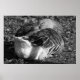 Schwarz-Weiß-Foto einer schläfrigen Gänse. In der Nähe von Roath Park Lake, Cardiff, Wales.