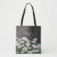 Moderne stilvolle, personalisierte Taschentasche mit sonnigen Gänseblümchen auf dunkelgrauem Hintergrund.