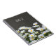 Modernes, stilvolles personalisiertes Notizbuch mit sonnigen Gänseblümchen auf dunkelgrauem Hintergrund.