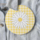 Ein Entwurf, der eine hübsche Gänseblümchen-Blume mit den weißen Blumenblättern und einer gelben Mitte kennzeichnet. Der Hintergrund ist ein weißes und gelbes Gingham-Karomuster. Ein nettes girly Blumenmuster.
