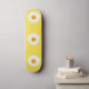 Grafische mit Blumenausrüstungsbeschreibungen der Gänseblümchen-Blume ein weißes Gänseblümchen mit Smiley-Blumenkern in der einfachen, minimalen Art, Sie glücklich und positive Gefühle holend. Die Hintergrundfarbe ist kundengerecht. Klicken Sie den besonders anfertigen Knopf an und wählen Sie Ihre Lieblingsfarbe!