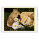 Teddy liebt Gänseblümchen und genießt die Sonne im Garten. Sommer ist schön