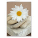Ein Single Gänseblümchen, das auf Steinen und einem kleinen Sockel stillsteht.