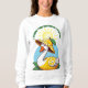 Diese Gans sitzt unter einem Haufen Zitronen, offensichtlich an einem warmen Tag, an dem die Sonne scheint und einen herrlichen Sonnenhut trägt, mit den Worten in einem Bogen um das Design "Ich denke, diese Gans ist gekocht" in hellen Farben, um das Design