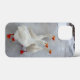 Foto von Zolotareva.Gänseweiß auf dem weißen Schnee.Gänse sind lustig.