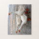 Foto von Zolotareva.Gänsehaut weiß auf dem weißen Schnee.Gänse sind lustig.Sie können Addenamen oder benutzerdefinierten Text. Vorlage personalisieren.