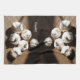 Ganze Knoblauchdecken auf braunem Rattanhintergrund sind geschmackvoll auf diesem einzigartigen Küchentuch angeordnet. Die fünf weißen Knoblauchzwiebeln, die in einem Dreieck angeordnet sind, werden mit dunklen Schatten hervorgehoben. Das Wort Knoblauch kann geändert werden, um diese Handtücher mit einem Familiennamen oder einem beliebigen Text zu personalisieren. Die kulinarische Totlebensfotografie hat ein dramatisches Gefühl sowie ein rustikales Gefühl, das sich ideal für jede Landküche eignet. Das dekorative und funktionale Kräuterdisplay eignet sich hervorragend für einen Hauswärmer, einen Gourmet-Koch oder Ihren Lieblingskoch. Jede Küche benötigt frische Knoblauch, Kräuter und Gewürze. Das ist die originale Lebensmittelfotografie von JLW_FOTOGRAFIE.