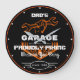 Garage oder Namensgarage des Vaters mit orangefarbener Hand und französischer Grafik auf schwarzem Hintergrund. Verwenden Sie einfach die Option Vorlage anpassen, um den Text zu ändern. Funny stolz reparieren, was Sie mit Slogan Typografie mit jedem Datum bringen. Wählen Sie einfach die Farbe und Größe der Hand.