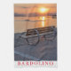 Ein schönes Foto einer Bank an der Promenade im Dorf Bardolino am Gardasee in Italien bei Sonnenuntergang gedruckt auf einem Souvenirhandtuch.