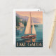 Erleben Sie die ruhige Schönheit des Gardasees bei Sonnenuntergang mit dieser Postkarte mit einem anmutigen Segelboot, das durch ruhiges Wasser gleitet. Die warmen Farbtöne der untergehenden Sonne reflektieren die Seeoberfläche, gerahmt von majestätischen Bergen in der Ferne. Ideal für Liebhaber von ruhigen Landschaften, Wasserszenen und klassischen Reisemöglichkeiten.