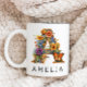 Eine wunderschöne personalisierte Kaffee-Tasse mit einem Schmetterling und Blumenbrief "B" Monogramm, mit dekorativen Aquarellblumen und Blumengartenbildern. Sie können diese Tasse ganz einfach mit Ihrem Namen anpassen oder ein einzigartiges Geschenk für Ihre Lieben erstellen.