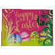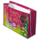 Stilvolle und farbenfrohe Geschenktasche mit Blumen und Ostereiern.