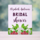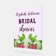 Gartenthematisches Brautparty mit weißen Dahlien, Himbeeren und Pfefferminzsprigs mit lila Schrifttyp