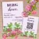 Gartenthematisches Brautparty mit weißen Dahlien, Himbeeren und Pfefferminzsprigs mit lila Schrifttyp