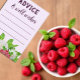 Gartenthematisches Brautparty mit weißen Dahlien, Himbeeren und Pfefferminzsprigs mit lila Schrifttyp