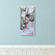 Niedliche Fee mit Brillen und einer Feder im Haar versteckt sich in einem Tulpengarten. Schöne Illustration von Arthur Rackham. "Als er Peters Stimme hörte, stöhnte er hinter einem Tulp in Alarm." Aus dem Roman "Peter Pan in Kensington Gardens", einem Roman von J. M. Barrie, der 1906 veröffentlicht wurde.