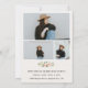 Elegante Rosa- und Weißgartenarrangements, Blumenarrangements und Grünanlagen, Ankündigung des Abschlusses und Einladung. Kartenausstattung, Elfenbeinbeige Hintergrundfarbe, gerahmtes Foto an der Vorderseite des Single mit 3 zusätzlichen Fotos auf der Rückseite.
