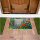 Machen Sie Ihren Außenbereich mit unserem Außenteppich "Garden Gate Serenity" zu einem ruhigen Rückzugsort. Dieses charmante Design präsentiert eine malerische Gartenlandschaft mit einem weißen Zaun, umgeben von einer üppigen Auswahl blühender Blume, darunter lebendige Mohnblüten, Delphinen und eine Vielzahl von bunten Wildblumen.