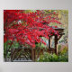 Mit diesem farbenfrohen Plakatdruck, der das fotografische Bild einer Gartenszene mit einem Pavillon und einem Kamin, roten Ahornblättern in der Herbstsaison zeigt, wird ein Wohnraum dekoriert. Wählen Sie Ihre Poster-Größe und andere Optionen, wie gewünscht.
