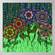 Dieses Poster hat bunte Fantasy-Blume, Gras und wilde Äste, die vor einem dunklen Nachthimmel leuchten.