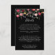Diese Gartenkarte für die Wildblume mit ihren vielen Farben ist perfekt für eine rustikale Hochzeit. Das Design umfasst eine bunte Auswahl an rosa, rot, lila, gelb, weiß, violett, rot, bordeauxfarbenen Blume in schwarzem Hintergrund.