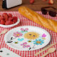 This artwork is a cheerful and whimsical illustration featuring a collection of brightly colored elements such as the sun, flowers, butterflies, bees and hearts. It is a playful, child friendly design. It would be perfect for children's decor, stationery, or spring/summer themed celebrations and gatherings