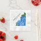 Gartenromantik, blaue Hydrangea-Papierservietten. Nutzen Sie dieses hübsche, hellblaue Blumendesign für Brautpartys, Hochzeitsfeiern, Probe Dinner oder jede Veranstaltung. Passen Sie zwei Textzeilen an. Geschlossenes Design auf präparierten Servietten mit Namen und Hochzeitsdatum in schwarzem Text.