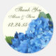 Blaue Hydrangea Gastgeschenk Hochzeit Etiketten mit "danke" Text, Namen und Hochzeitstag.